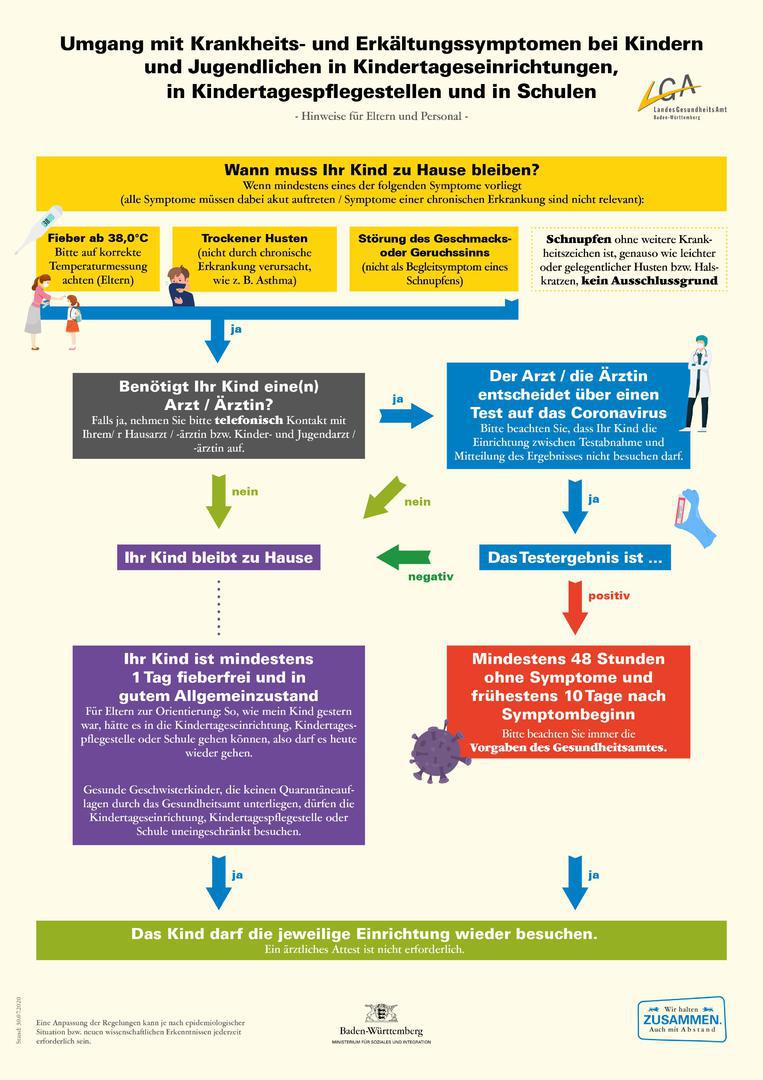 das Sozialministerium und das Landesgesundheitsamt haben wichtige Hinweise zum Umgang mit Krankheitssymptomen in Schulen veröffentlicht. Diese sind ab Schulstart auch an der Schlossgartenschule gültig. Wir bitten um Beachtung!